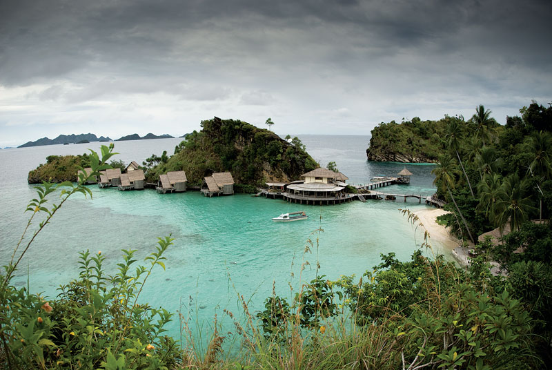 Misool Island Eco Resort havde 17 unge sorttippede revhajer svømmende i bugten foran.