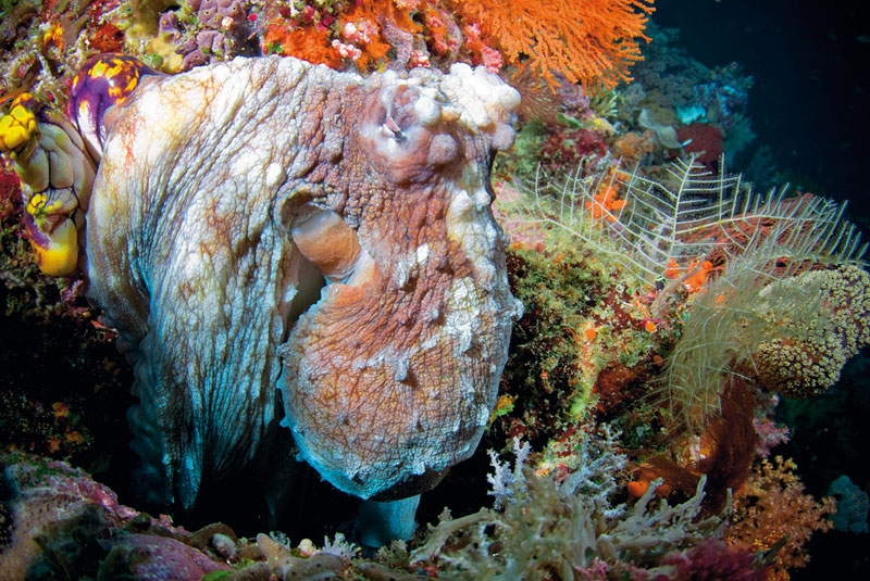 Blæksprutten poserede og fremviste hele sit repertoire af farver og mønstre.