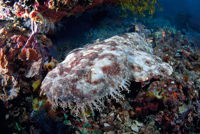 Wobbegongen er god til at efterligne et gulvmåtte.