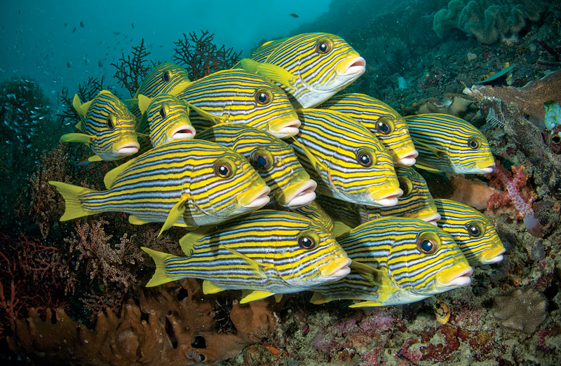 Oriental sweetlips holder tæt sammen for en sikkerheds skyld.