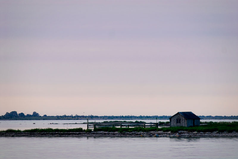Indløbet mod Kårehamn er det rene postkort-motiv. På en lille ø står en enlig fiskerhytte.