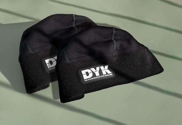 Den berømte DYK-hue er lavet i samarbejde med beklædningsspecialisten Fourth Element og har i snart 15 år holdt skandinaviske dykkeres hoveder varme. Den er syet i polartech-fleece og kan tåle at komme i vaskemaskinen. Vi har i samarbejde med Fourth Element i '22 lavet en ny hue som kan købes fra 5. september 2022. Den nye hue har desuden opdateret DYK logo i nyt materiale.